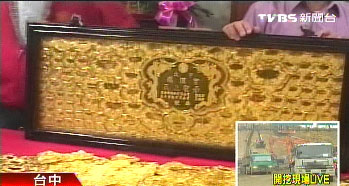 大甲媽祖鑾轎出巡期間,臺(tái)灣各地信徒簇?fù)砟ぐ荩S多人還愿贈(zèng)送金牌,鎮(zhèn)瀾宮初步估計(jì)至少收到1400多面金牌。媽祖鑾轎上方擺放著一面匾額,里面擺滿999純金的足兩金牌,最重的一塊有8兩重,市值超過(guò)35萬(wàn)元。鎮(zhèn)瀾宮人員透露:“捐贈(zèng)者是建筑業(yè)的,今年是第3年了,今年他覺(jué)得還金牌很高興,一定是有達(dá)到每個(gè)人的目標(biāo)。”