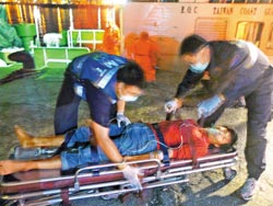澎湖縣七美衛(wèi)生所緊急搶救,陳健永、曾建基兩人病情獲得控制,經(jīng)臺(tái)灣海巡隊(duì)巡防艇送往澎湖三總分醫(yī)院救治。錢榮添昏迷沒有意識(shí),一度心跳停止,立即插管后由直升機(jī)緊急后送高雄榮總醫(yī)院,再轉(zhuǎn)往小港醫(yī)院,目前仍呈現(xiàn)昏迷,恐有生命危險(xiǎn)。