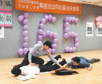 據(jù)臺(tái)灣《聯(lián)合報(bào)》報(bào)道,2009年12月26日,臺(tái)北市警察局長(zhǎng)謝秀能指示臺(tái)北市各警察分局全體警員手持反詐騙倡導(dǎo)單,在管區(qū)內(nèi)挨家挨戶進(jìn)行訪查,開(kāi)展反詐騙宣傳,向民眾解說(shuō)各種詐騙手法。并要求臺(tái)北市警員,如遇民眾不在家或民眾不愿意讓警員進(jìn)門的情況,警員必須在公寓大門、小區(qū)公告欄張貼倡導(dǎo)單,或到社區(qū)管理員處放置倡導(dǎo)單,從而讓民眾有機(jī)會(huì)看到。