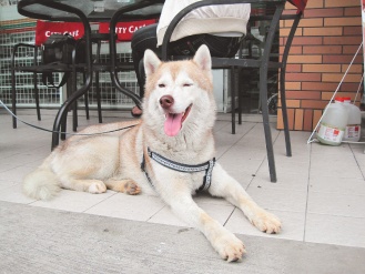 這只漂亮、通人性的哈士奇犬被遺棄在臺中縣一家超市前。圖片來源:臺灣《聯合報》