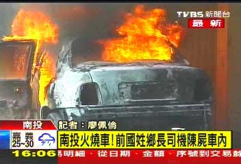 中國臺灣網9月10日消息 據臺灣TVBS電視臺報道,臺灣南投縣國姓鄉發生一起轎車著火事件,一名男子陳尸車內,經南投縣消防警察確認,死者是臺南縣前國姓鄉鄉長司機。