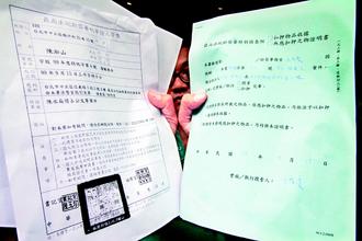 檢調搜索臺北市臨沂街的陳水扁辦公室,查扣大批公文,扁辦主任陳淞山出示臺“高檢署”約談及特偵組扣押物品收據。 來源:臺灣《聯合報》