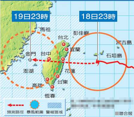 “凡亞比”臺風路徑。來源:臺灣《聯合報》