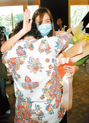 莎莎(左)22日返臺,母親趕緊送上豬腳面線壓驚。 來源:臺灣《聯合報》