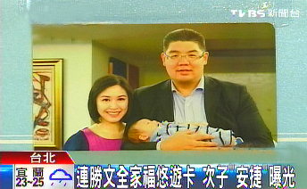 蔡依珊、連勝文抱著連安捷一起拍合照制作成上千張悠游卡,連安捷可愛的的模樣也首度曝光。圖片來源:臺灣TVBS電視臺