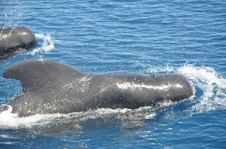 領(lǐng)航鯨:屬哺乳綱、鯨目、領(lǐng)航鯨科、領(lǐng)航鯨屬。又名“巨頭鯨”,拉丁學(xué)名為Globicephalamelas。領(lǐng)航鯨主要分布于太平洋、印度洋、大西洋等熱帶、溫帶海域,很少在寒冷的海域活動,在中國僅見于東海和臺灣省附近海域。是社會性很強(qiáng)的鯨豚,通常都是群體出現(xiàn),由一只雄性領(lǐng)航,因此才叫做領(lǐng)航鯨。 領(lǐng)航鯨屬于黑鯨類,體型粗狀,雄性背鰭很大,類性圓形倒勾,在海上非常容易辨認(rèn)。