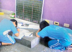 臺(tái)中縣某小五年級(jí)老師被學(xué)生家長爆料,強(qiáng)迫學(xué)生跪地寫字,老師辯稱只是讓孩子蹲著,家長出示以手機(jī)錄下的證據(jù),顯見孩子跪在講臺(tái)寫作業(yè)。圖片來源:臺(tái)灣《中國時(shí)報(bào)》