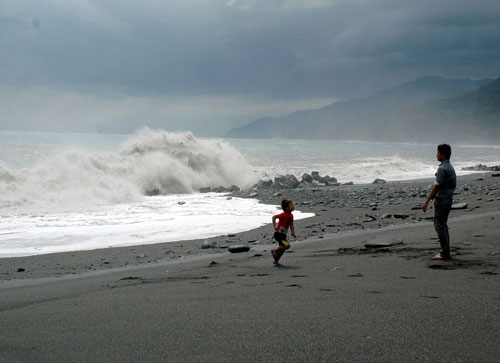 臺風“鲇魚”影響 臺東海岸現晴天巨浪(組圖)