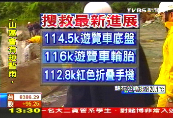 據(jù)報(bào)道,救援人員在蘇花公路112.8公里處找到一支紅色折疊手機(jī),但由于電池已經(jīng)耗損,所以無法確認(rèn)手機(jī)的擁有者。不過手機(jī)上的維修標(biāo)簽是繁體字,可能是失聯(lián)的臺(tái)灣人士所有。