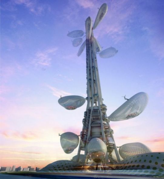 這座塔式建筑名為“飄浮的觀景臺”(Floating Observatories),將建在臺灣第三大城市臺中。在最近舉行的一場設計大賽中,“飄浮的觀景臺”設計摘得桂冠。這座建筑的外形好似一棵樹,將建造8個飄浮的觀景臺,能夠像樹葉一樣在“樹干”上上下移動。每一個觀景臺都可充當一部電梯,可搭載80人,采用臺灣島外形。