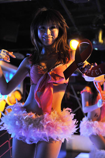 臺(tái)當(dāng)局“衛(wèi)生署”11月30日在臺(tái)北東區(qū)夜店倡導(dǎo)防范艾滋病,清涼辣妹倡導(dǎo)防愛滋吸引目光。圖片來(lái)源:“中央社”