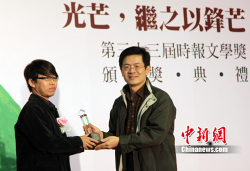 本屆評審、著名詩人席慕蓉介紹詩歌組兩位并列首獎:楊書軒的《桃花源·2010》寫的是“舍不得自己的鄉土被貪婪的人所改變”,許裕全的《FISTULA》寫的是“舍不得母親在洗腎時所受的折磨”,題材一大一小,都是書寫人生的困擾。席慕蓉說:“人心中最狹隘的痛是最普世的。寫作,就是尋求表達自我內心,給人生以力量。”