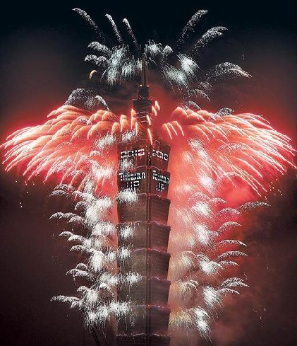 據臺灣《蘋果日報》報道,迎接辛亥百年,臺灣將有七場大型跨年煙火,精彩度更勝往年。知名爆破藝術家蔡國強首度為臺北101金融大樓、大佳河濱公園慶典設計煙火,已知101煙火耗資六千萬元(新臺幣,下同)居七場之冠,高雄義大世界以五萬發煙火稱霸,云林劍湖山世界施放六百七十一秒則是臺灣最久。