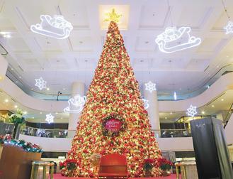 晶華酒店的圣誕樹有三層樓高,雪花、麋鹿與耶誕老人從天而降,圣誕氛圍濃。圖片來源:臺灣《聯(lián)合報》