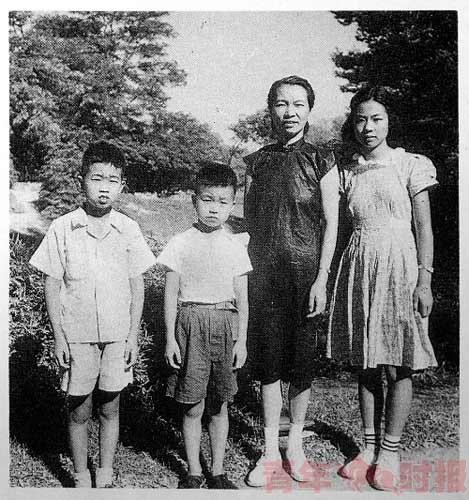 朱諶之與兒子朱明、侄子朱輝、外甥女顧倬云攝于復興公園