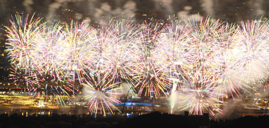 大佳園區(qū)環(huán)繞4公里的環(huán)形焰火,持續(xù)發(fā)射七色牡丹煙火。(圖:臺(tái)灣《聯(lián)合報(bào)》)