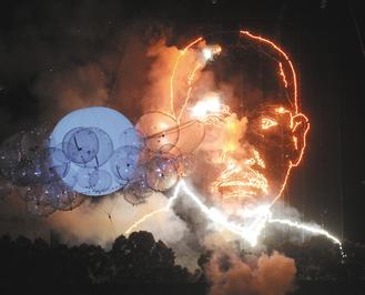 煙火勾勒出孫中山的頭像(圖:臺(tái)灣《聯(lián)合報(bào)》)