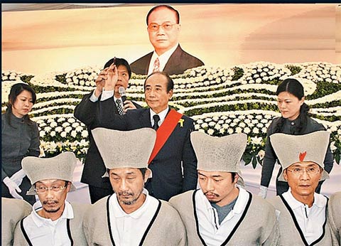 王振鏗上月17日因肺癌過世,昨日親友安排21個陣頭為他風(fēng)光送行,警方估計陣頭人數(shù)達(dá)七、八百人,大型樂隊儀隊、鼓吹陣、醒獅、舞龍、家將團等長達(dá)2公里。