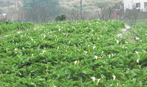 臺北陽明山冬季迎花海 海芋提前含苞吸睛(圖)