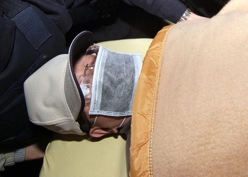 陳水扁因心臟不適,19日戒護(hù)外醫(yī),在多輛警車(chē)引導(dǎo)戒護(hù)下,被送往桃園醫(yī)院。陳水扁躺在擔(dān)架上,沒(méi)有說(shuō)任何話。圖片來(lái)源:臺(tái)灣“中央社”