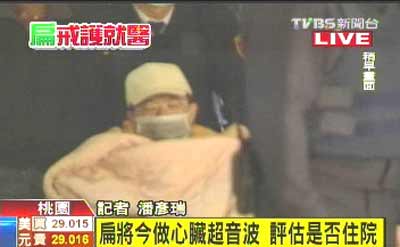 據(jù)臺(tái)灣《蘋果日?qǐng)?bào)》報(bào)道,陳水扁19日早戒護(hù)就醫(yī),因擔(dān)心媒體過(guò)多,由醫(yī)院垃圾通道出入口進(jìn)入,陳水扁之子陳致中對(duì)此相當(dāng)不滿,認(rèn)為此舉是種侮辱,并認(rèn)為扁就醫(yī)時(shí)上手銬和腳鐐就醫(yī)相當(dāng)不妥,未給卸任臺(tái)灣地區(qū)領(lǐng)導(dǎo)人禮遇。