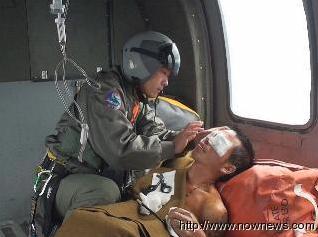 上午7時58分,臺軍編號7005的直升機,自臺東志航基地起飛前往目標區實施搜索,并于9時23分發現一名36歲的大陸船員陳華新在海中載浮載沉,立即由機組人員以吊掛方式將陳姓船員救援上機。報道指出,陳姓船員救援上機時,全身沾滿油污,眼睛因油污侵入極度不適,并有輕微失溫現象,隨機的航空救護士官長對其進行檢查,以生理食鹽水協助清除油污,并給予毛毯保暖。