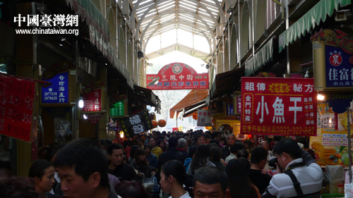 中國(guó)臺(tái)灣網(wǎng)2月4日高雄消息 每到農(nóng)歷年底采買年貨之時(shí),在臺(tái)北的人們總會(huì)想到迪化街,而高雄也有著從日據(jù)時(shí)代就集合南北雜貨販賣商的三鳳中街。每年從過(guò)年前一個(gè)月至除夕夜是這條街最熱鬧的時(shí)期,人潮擁擠、水泄不通,此時(shí)也是各家媒體采訪的焦點(diǎn),因此也有“北迪化,南中街”的稱號(hào)。