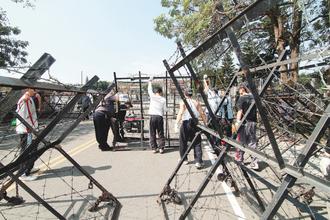 陳水扁妻子吳淑珍今天將送臺中監獄服刑,警方在監獄入口處架設拒馬,防止沖突。圖片來源:臺灣《聯合報》