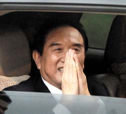 陳云林到佛光山參訪,受到大陣仗歡迎,他雙手合什感謝。