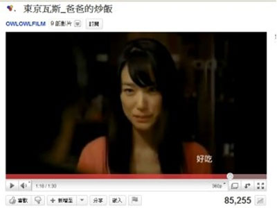 據(jù)臺(tái)灣“今日新聞網(wǎng)”報(bào)道,比起90年代,現(xiàn)在的臺(tái)灣電視廣告顯得乏味僵硬,當(dāng)網(wǎng)絡(luò)游戲廣告與看板式廣告充斥的年代,臺(tái)灣觀眾要尋求30秒的感動(dòng),必須得從網(wǎng)絡(luò)去挖掘。最近兩段日本東京“瓦斯”廣告影片就發(fā)揮催淚效果,讓許多臺(tái)灣網(wǎng)友感動(dòng)到不能自己。