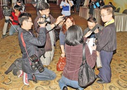 積極投身環保志工11年的王俊翰(右),獲志工菁英獎最高榮譽“親善大使獎”,會后接受媒體訪問,雖罹患侏儒癥,僅有134公分高,但散發樂觀與自信,宛如環保綠巨人 中國時報圖