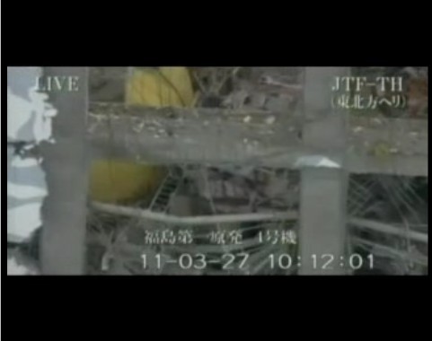 日本防衛省27日公開了一組由陸上自衛隊提供的日本大地震后東京電力福島第一核電站1至4號機組直升機俯拍錄像,其中4號機組反應堆安全殼頂蓋清晰可見。