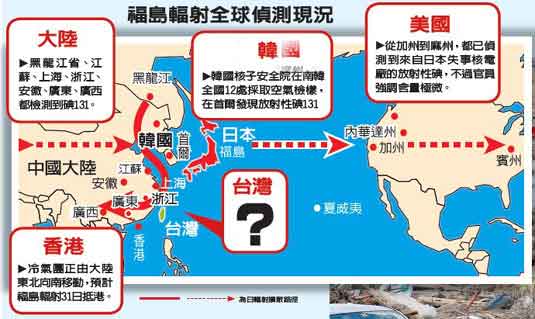 媒體報道,近日在大陸東北部和部分東南沿海省份,以及韓國的首爾,都測到人工放射性碘131。林秀雯認為,以風向來看,這些地區測到的輻射,應該是隨著西風帶,經過東太平洋、美國等地區,繞了一圈后再飄到華北和韓國一帶。