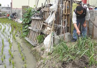 王林寶緞生前四處藏金飾,過世后,兒子王明信向警方借金屬探測器,在雞寮里搜索。 圖片來源:臺灣《聯合報》