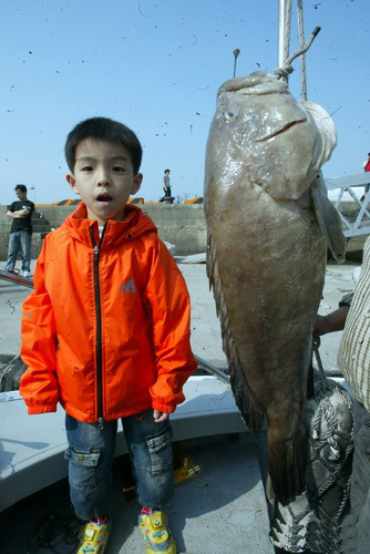 大石斑魚體型和5歲男童差不多。圖片來源:臺灣媒體