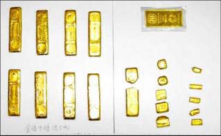 臺警方追繳的被竊黃金。圖片來自網(wǎng)絡