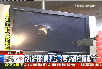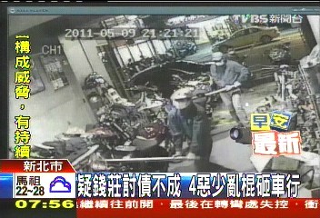 據(jù)臺灣TVBS電視臺報(bào)道,要錢不成竟然就砸店,昨天晚間9點(diǎn)半左右,臺灣新北市土城區(qū)一家重型機(jī)車行,遭到4名手持棍棒的少年,瘋狂亂砸,不僅店面遭殃,就連機(jī)車都被砸壞7輛,損失慘重,店主表示,3月中旬曾經(jīng)遭到錢莊份子暴力脅迫,強(qiáng)逼簽下本票,懷疑可能是當(dāng)時(shí)協(xié)調(diào)不成,才會(huì)被挾怨報(bào)復(fù)。