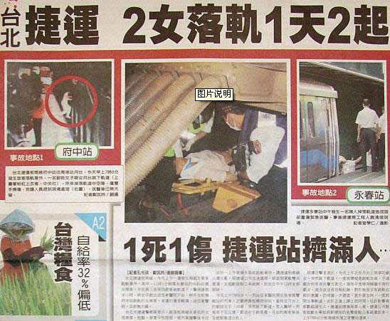 臺灣《聯合晚報》以頭版頭條報道兩名上班族跳軌輕生事件。圖片截自臺灣《聯合晚報》