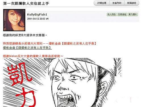 據報道,黃姓女網友“凱力”大學外文系畢業,目前擔任境外業務工作,日前她在論壇上發表“第一次跟爛軟人交往就上手”文章,兩周回文多達1400多則。