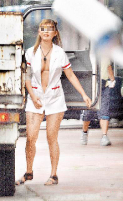 記者也發(fā)現(xiàn),環(huán)中路上的檳榔西施都年約20歲上下,穿著相當(dāng)大膽,幾乎都身著護(hù)士服,裙底就可看到性感內(nèi)褲,領(lǐng)口拉煉拉到肚臍處,只要有車子停靠買檳榔,檳榔西施幾乎都會(huì)將上半身靠著車窗,或伸進(jìn)車窗內(nèi)。