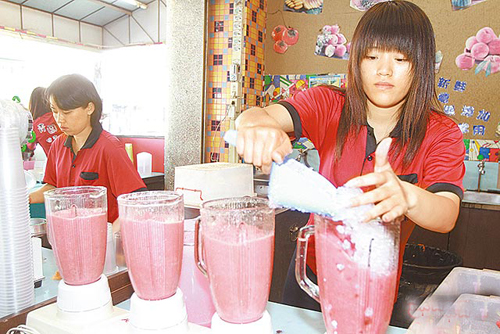 臺南市一家現榨果汁店,4臺果汁機整天滿載。圖片來源:臺灣媒體