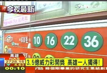 高雄市一彩民昨晚獨中3.5億威力彩頭獎。圖片來源:臺灣TVBS電視臺
