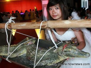 中國(guó)臺(tái)灣網(wǎng)6月7日消息 據(jù)臺(tái)灣“今日新聞網(wǎng)”報(bào)道,臺(tái)灣一名餐飲系女生,以20公斤重的兇猛鱷魚作為食材,在畢業(yè)成果展上展出,讓在場(chǎng)的觀眾不禁驚呼“美女與鱷魚”。