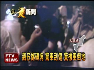 中國臺灣網6月7日消息 據臺灣媒體報道,端午假期,高雄飚車族相約出動狂飆,警方前往圍捕時,囂張的飆仔竟然拿磚塊丟向警車,一輛警車被砸中,一輛警用摩托車也被沖撞倒地。警方逮捕一對兄弟檔飆仔,依違反“公共危險罪”送辦。