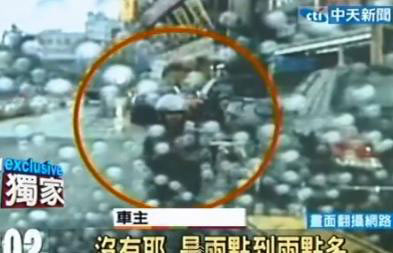 臺灣一老伯當街插香跪拜跑車。圖片來源:臺灣中天電視臺