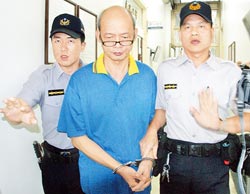 ▲黑心起云劑案4日下午在彰化地方法院開庭,昱伸公司負(fù)責(zé)人賴俊杰(中)開庭后由法警戒護還押看守所。圖片來源:臺灣《中國時報》
