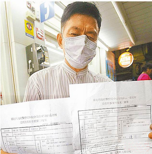 陳老板持控告王姓、陳姓女子的報案三聯(lián)單,仍堅信彼此有真愛,真是好傻好天真!圖片來源:臺灣媒體