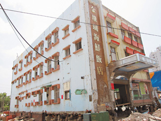 圖中的樓房施工后增高一米以上。圖片來源:臺灣《聯合報》
