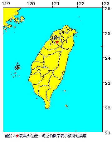 中國臺灣網10月5日消息 據臺灣媒體報道,今天清晨6時54分新竹發生里氏規模3.9級地震,震中位于新竹縣五峰鄉,地震深度5.1公里。各地最大震度為桃園縣三光、新竹市2級,苗栗縣獅頭山、宜蘭縣南山、新竹縣竹北市、桃園市和新北市則為1級。(中國臺灣網 馮江)
