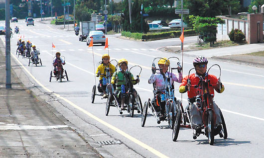 中國臺灣網10月9日消息 據臺灣《聯(lián)合報》報道,臺中市25位身心障礙人士,從小懷抱著“騎單車”夢想,由于雙腳行動不便無法圓夢。日前他們歷經3個月的魔鬼訓練,將于本月15日以電輔式手搖身障自行車環(huán)臺,平均年齡超過50歲的團員,要以手代腳“游”遍美麗寶島。